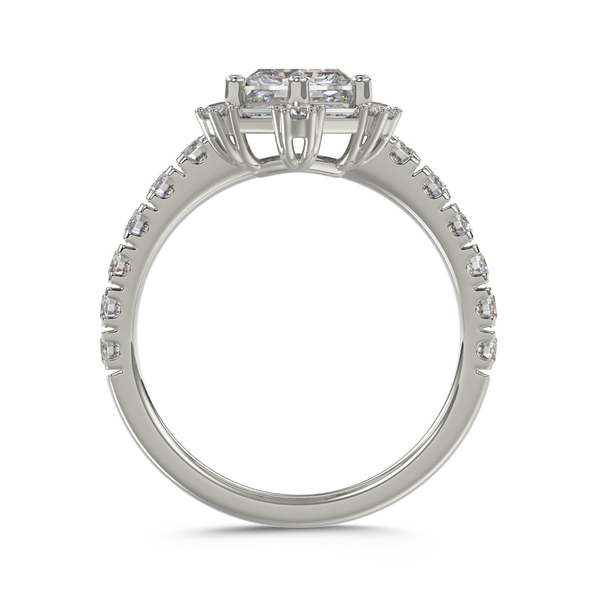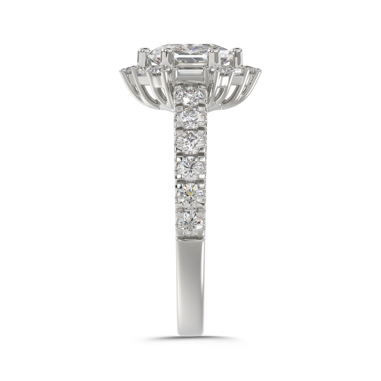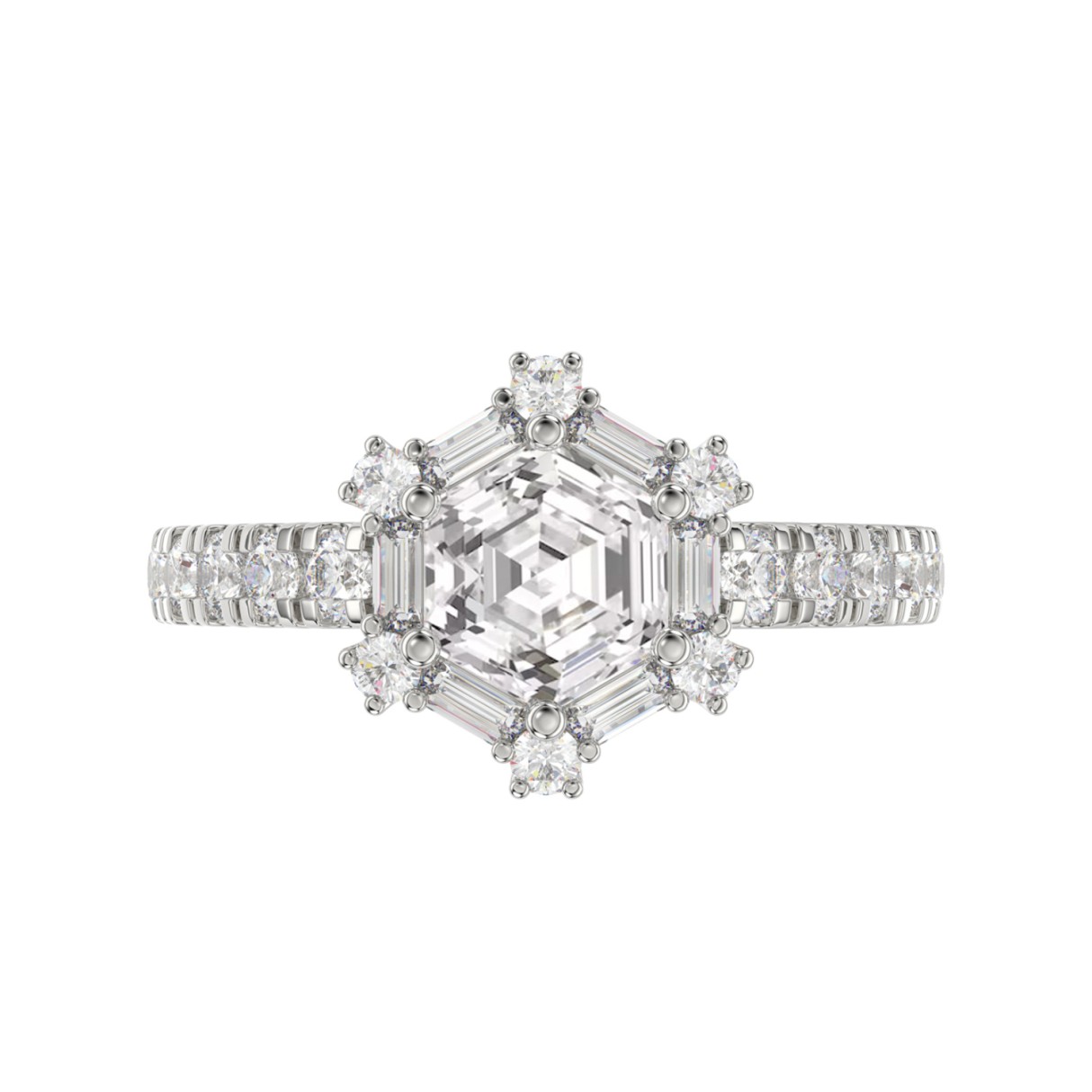 14K WHITE GOLD 1 3/4CT ROUND/BAGUETTE/HEZAGON STEP CUT DIAMOND LADIES RING