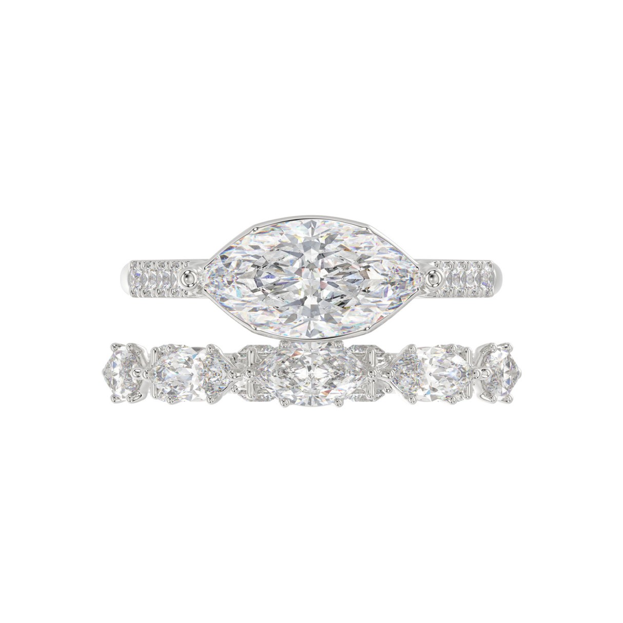 14K WHITE GOLD 3 1/2CT ROUND/MARQUISE DIAMOND LADIES BRIDAL SET (CENTER STONE MARQUISE DIAMOND 2.00CT)