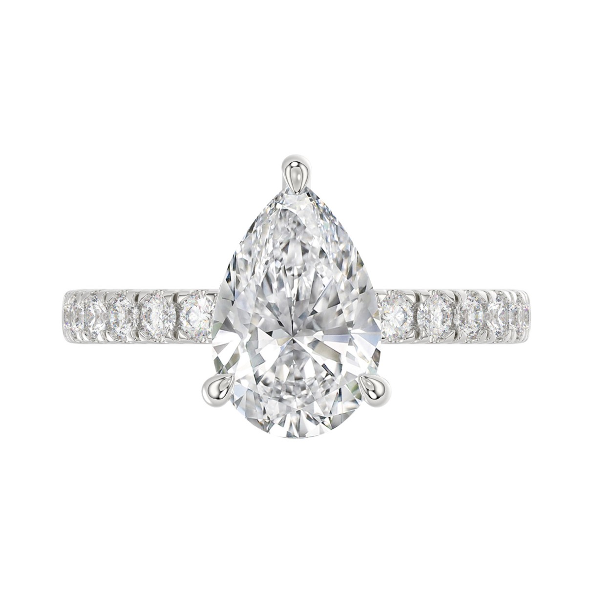 14K WHITE GOLD 3 1/2CT ROUND/PEAR DIAMOND LADIES RING (CENTER STONE PEAR DIAMOND 3CT)