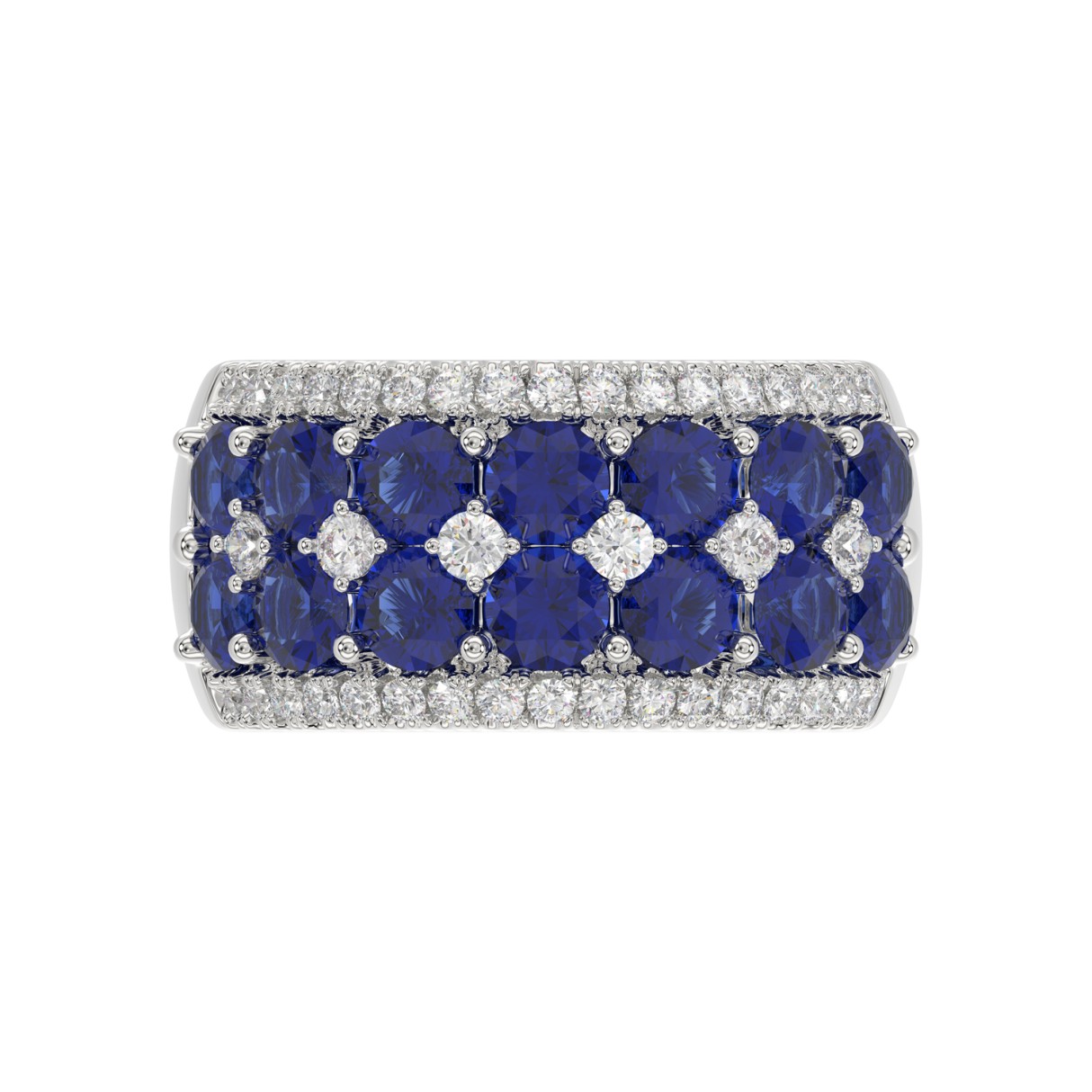 14K WHITE GOLD 4.00CT ROUND/ROUND BLUE SAPPHIRE DIAMOND LADIES RING