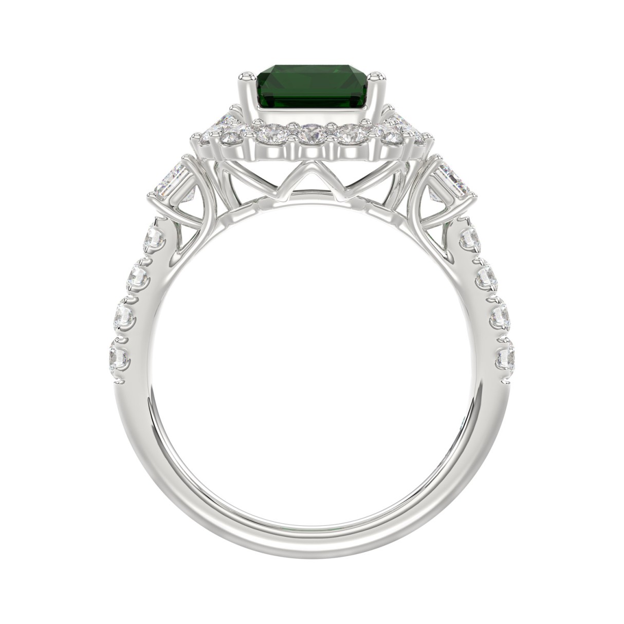 14K WHITE GOLD 4 1/2CT ROUND/EMERALD DIAMOND LADIES RING (CENTER STONE GREEN EMERALD DIAMOND 3CT)
