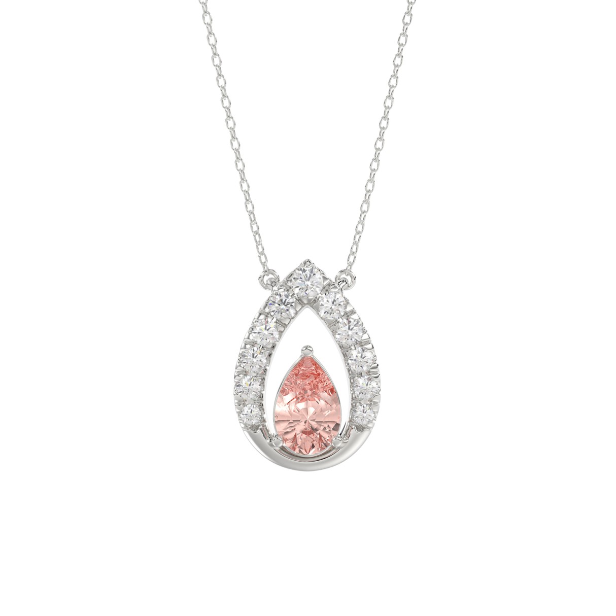 14K WHITE GOLD CRAFTED WITH 18K YELLOW GOLD BACK PLATE 1 1/2CT ROUND/PINK PEAR DIAMOND LADIES NECKLACE