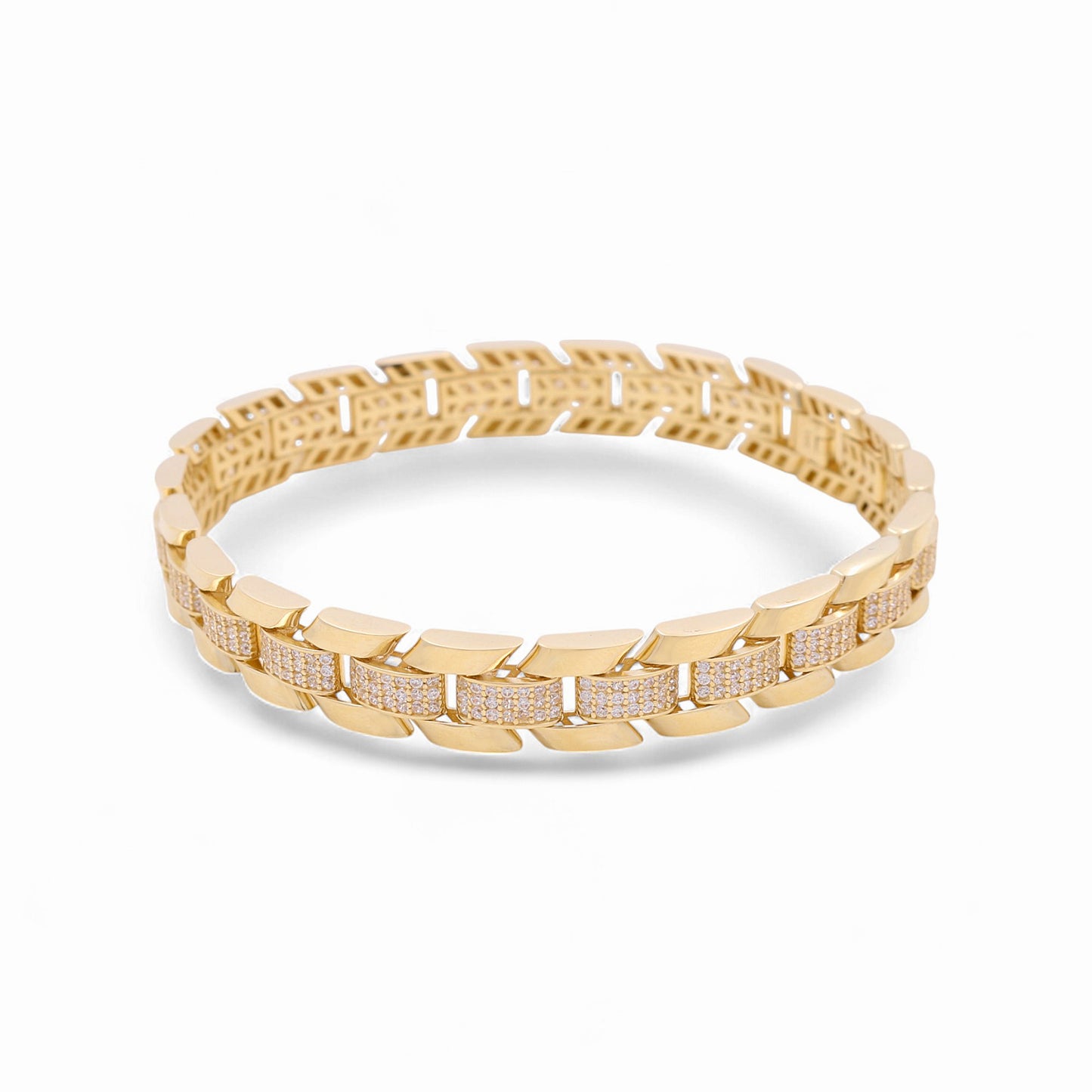 14K Yellow Gold Semisolid Italian Men’s Bracelet with Cz / Size: 8.5″ / Weight: 22.1 GR / 475-01678