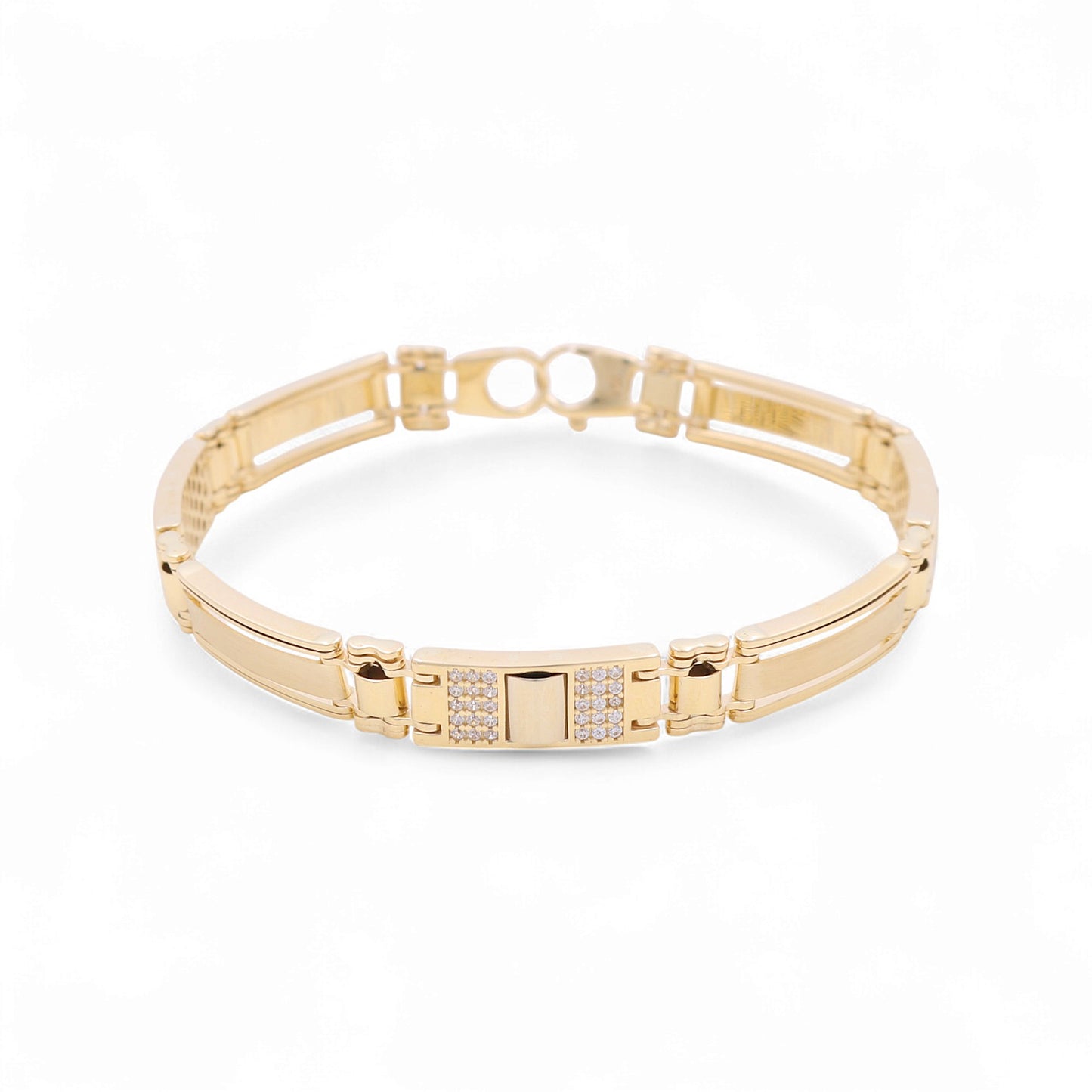 14K Yellow Gold Semisolid Italian Men’s Bracelet with Cz / Size: 8″” / Weight: 20.6 GR / 120-03094