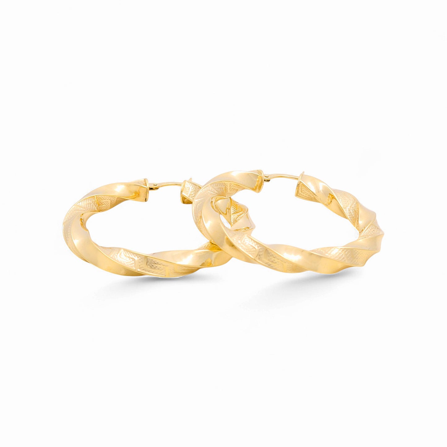 14K Yellow Gold Twist Hoops Earrings with Greek / Size: 5mmx30mm / Weight: 4.5 GR /
