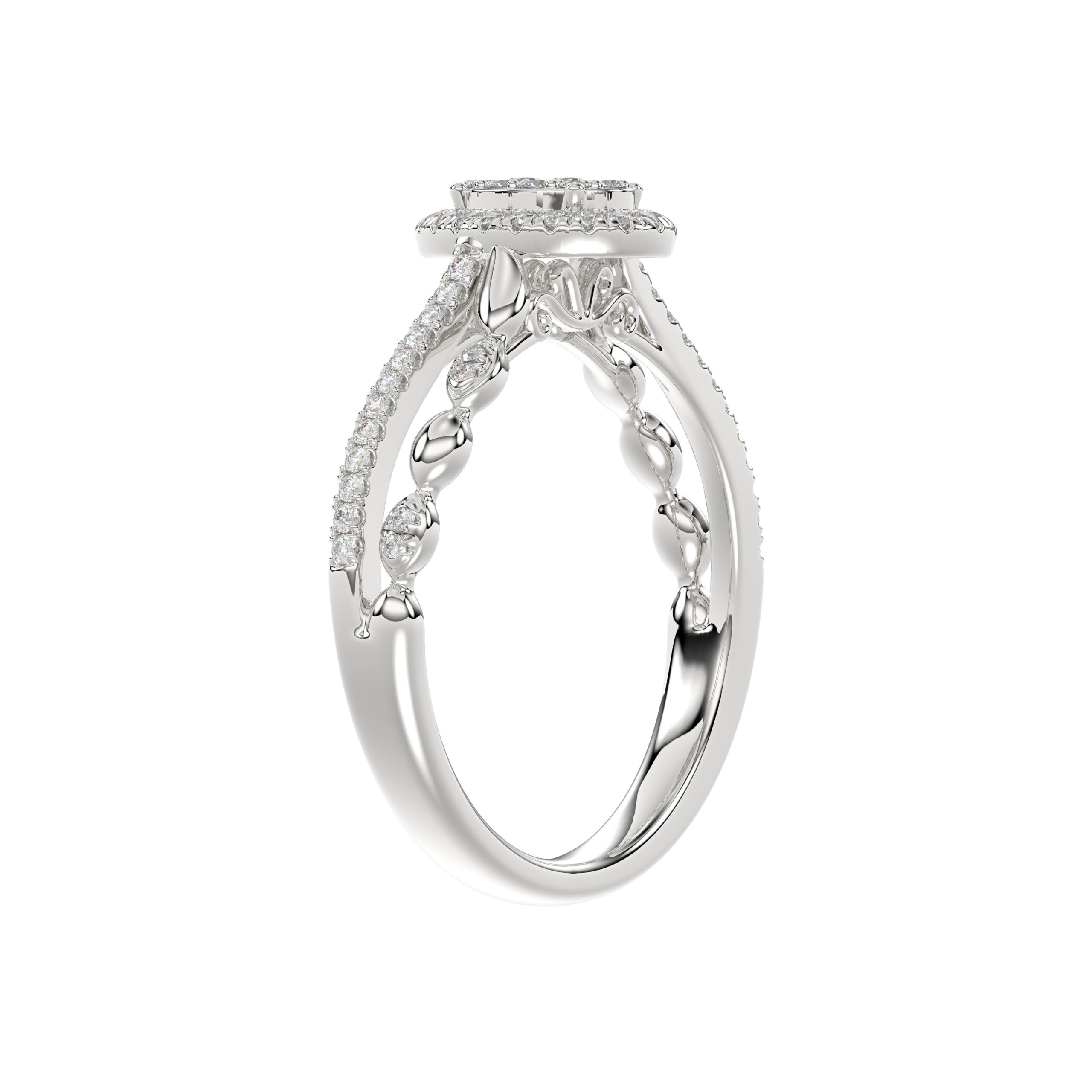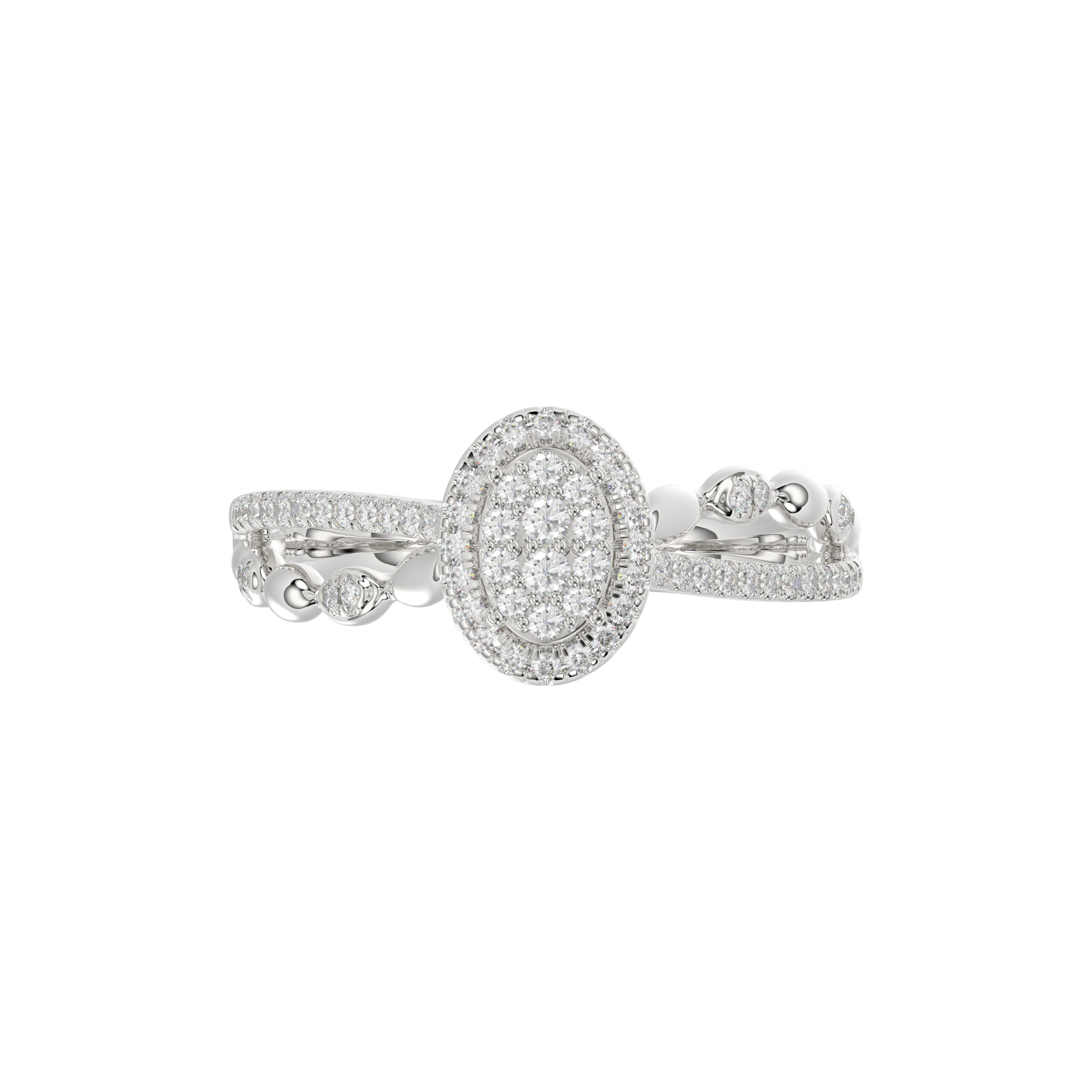 Adies 0.25Ct Round Diamond Sterling Silver White Promise Ring – Halo Oval Design With Split Shank, Elegant Women’S Jewelry