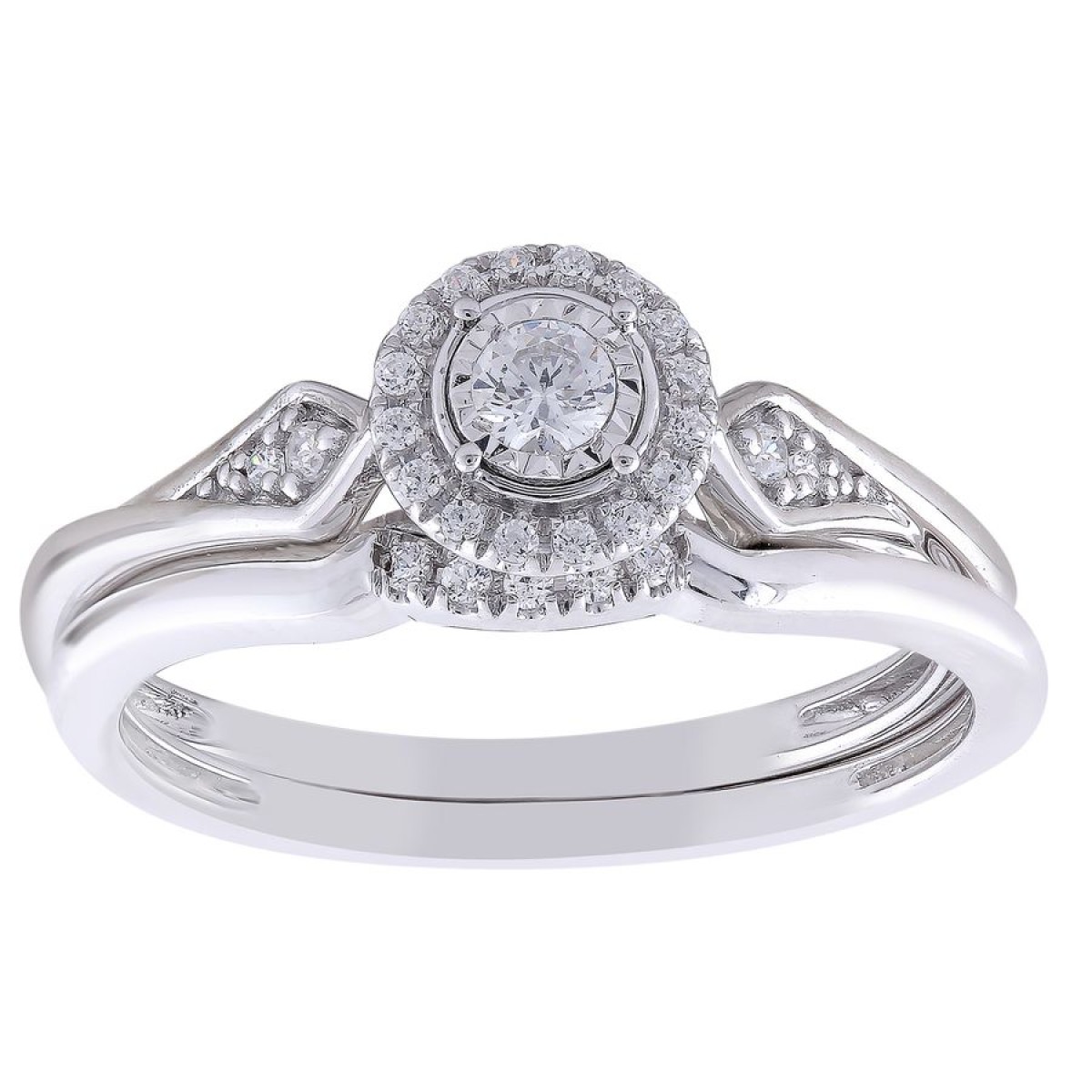 LADIES BRIDAL SET 0.20CT ROUND DIAMOND 10K WHITE GOLD