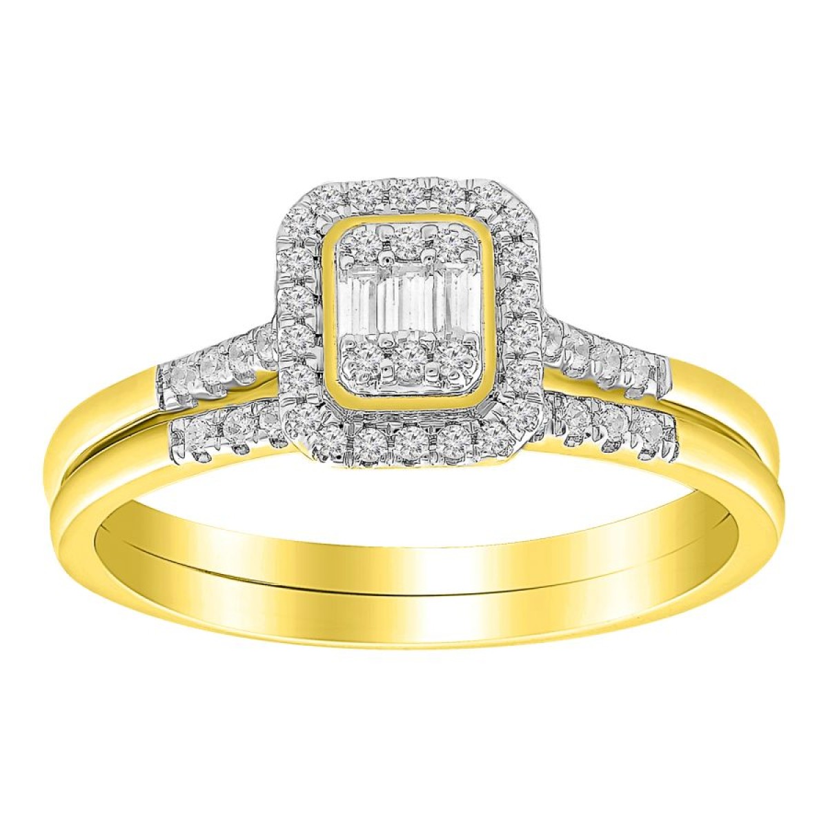 LADIES BRIDAL SET 0.25CT ROUND/BAGUETTE DIAMOND 10K YELLOW GOLD SIZE 7
