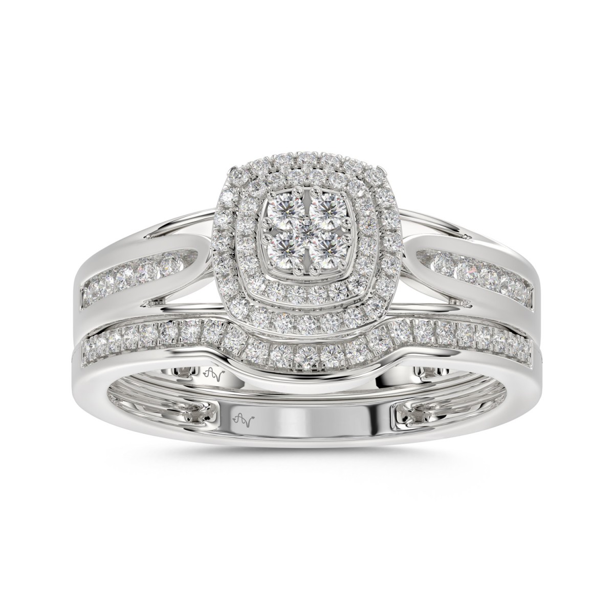 LADIES BRIDAL SET 0.30CT ROUND DIAMOND 10K WHITE GOLD SIZE 7
