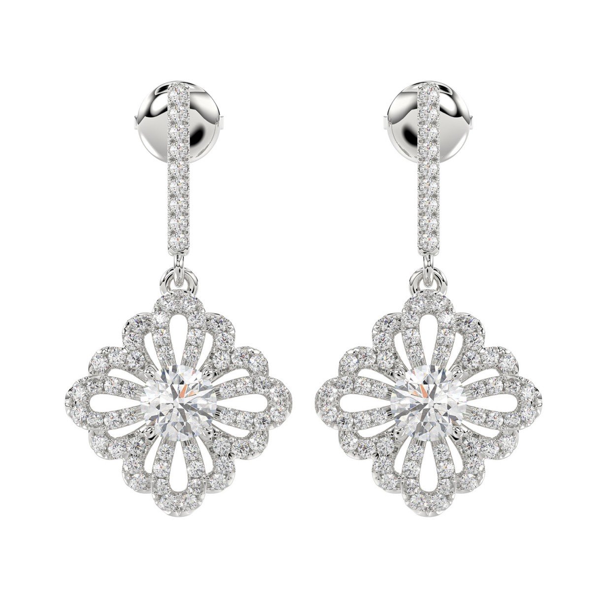 LADIES EARRINGS 1 3/4CT ROUND DIAMOND 14K WHITE GOLD