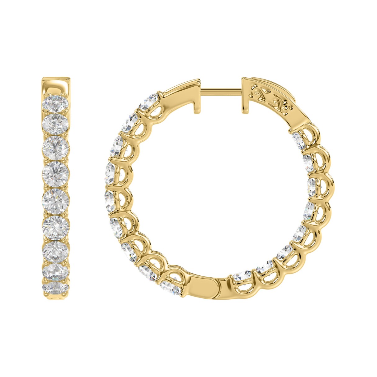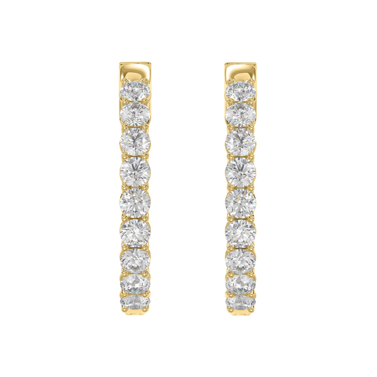 LADIES HOOP EARRINGS 3CT ROUND DIAMOND 14K YELLOW GOLD