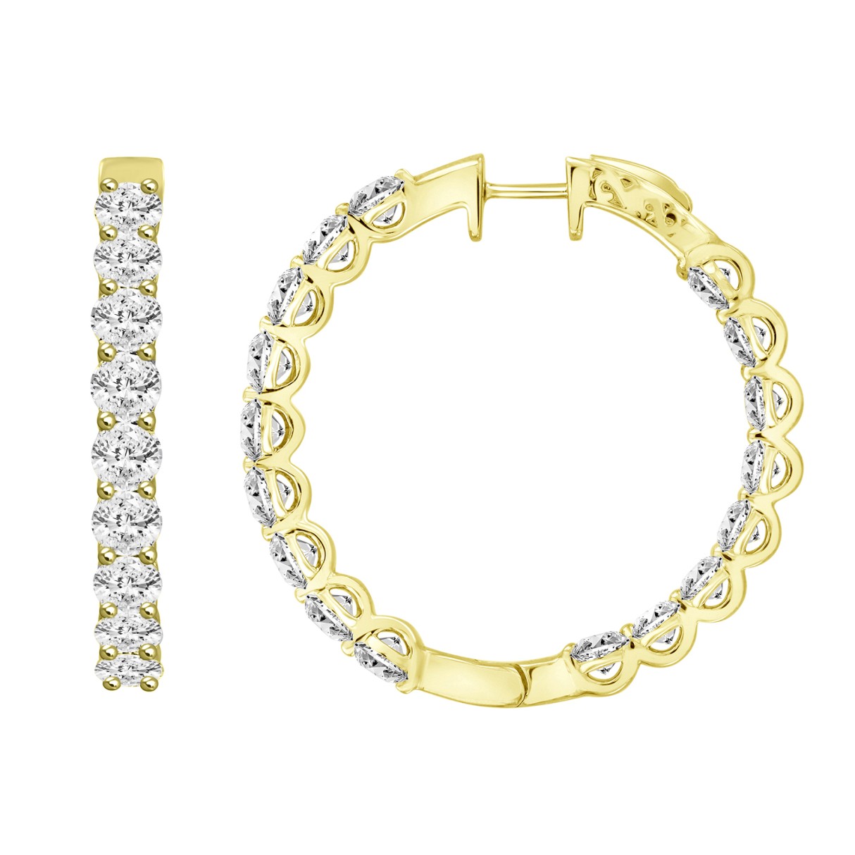 LADIES HOOP EARRINGS 5CT ROUND DIAMOND 14K YELLOW GOLD