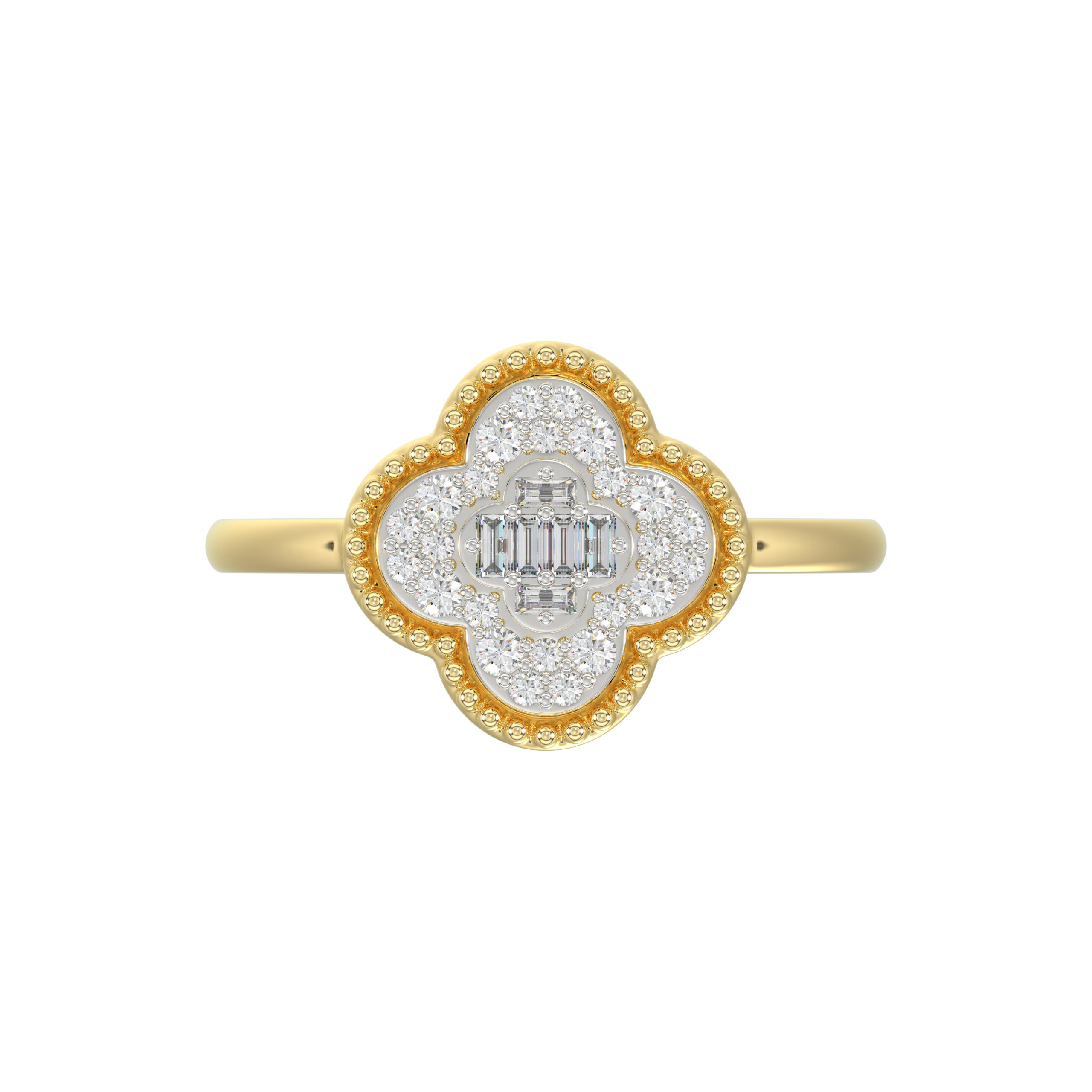 LADIES RING 0.25CT ROUND/BAGUETTE DIAMOND 10K YELLOW GOLD