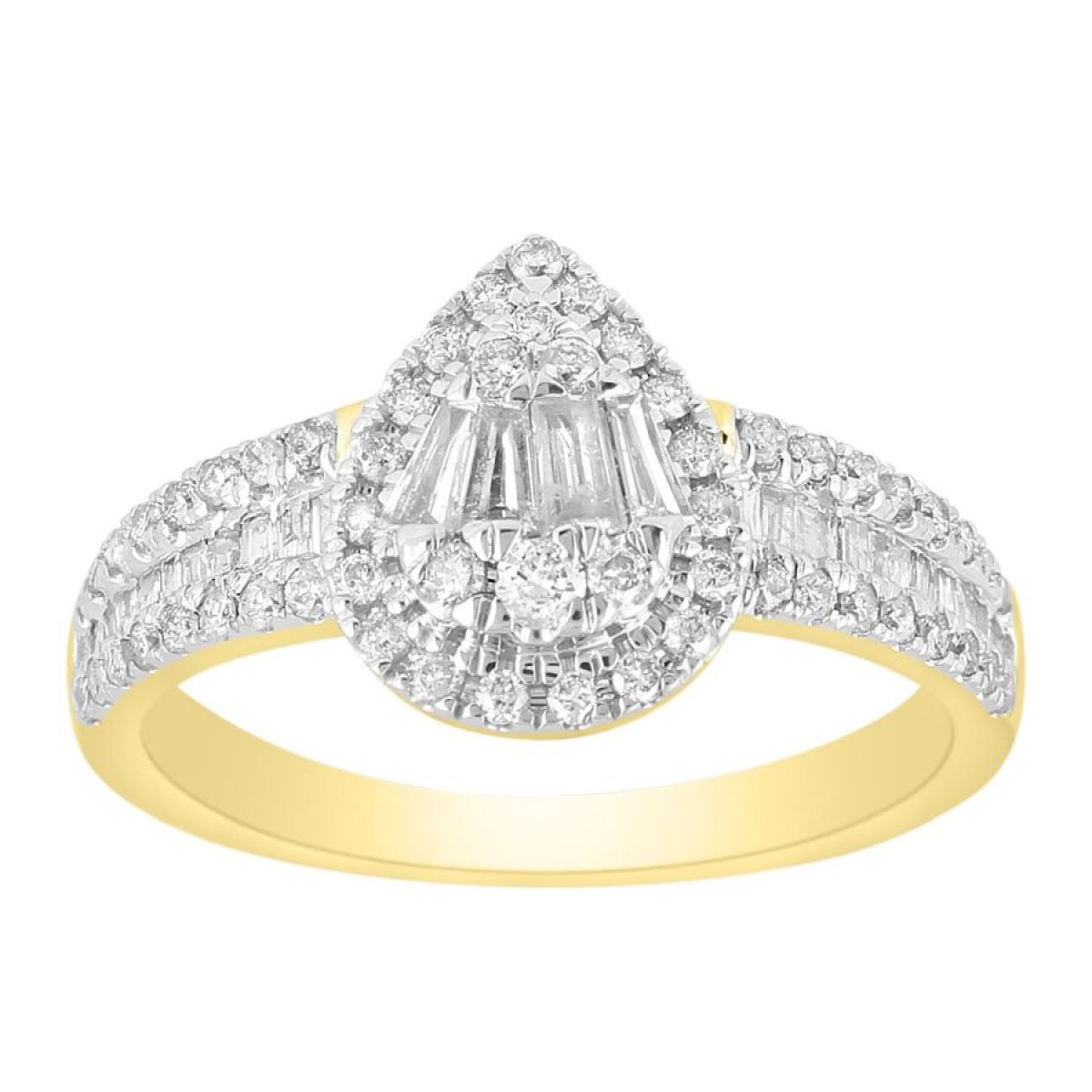 LADIES RING 0.75CT ROUND/BAGUETTE DIAMOND 10K YELLOW GOLD SIZE 7