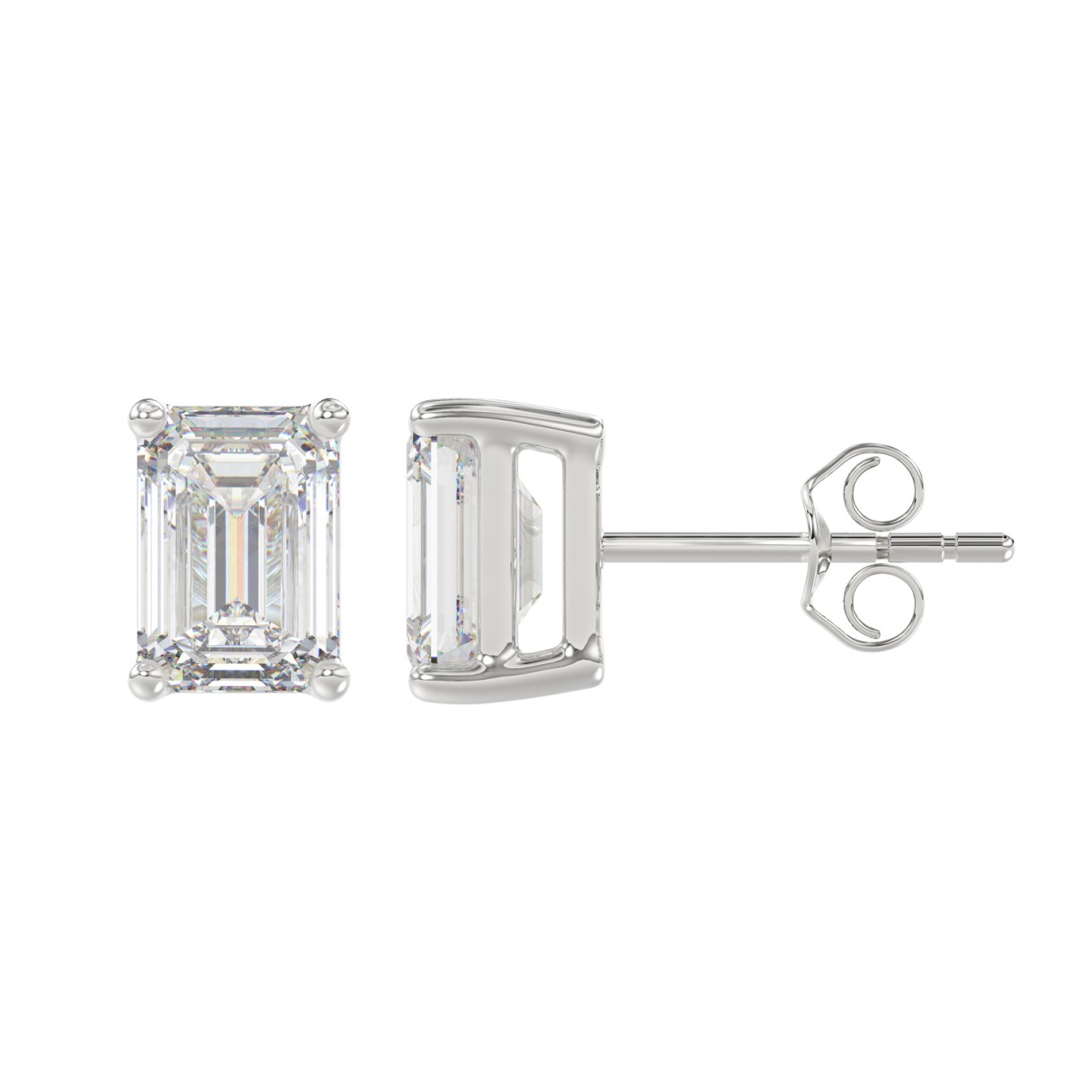 LADIES SOLITAIRE EARRINGS 4.00CT EMERALD DIAMOND 14K WHITE GOLD