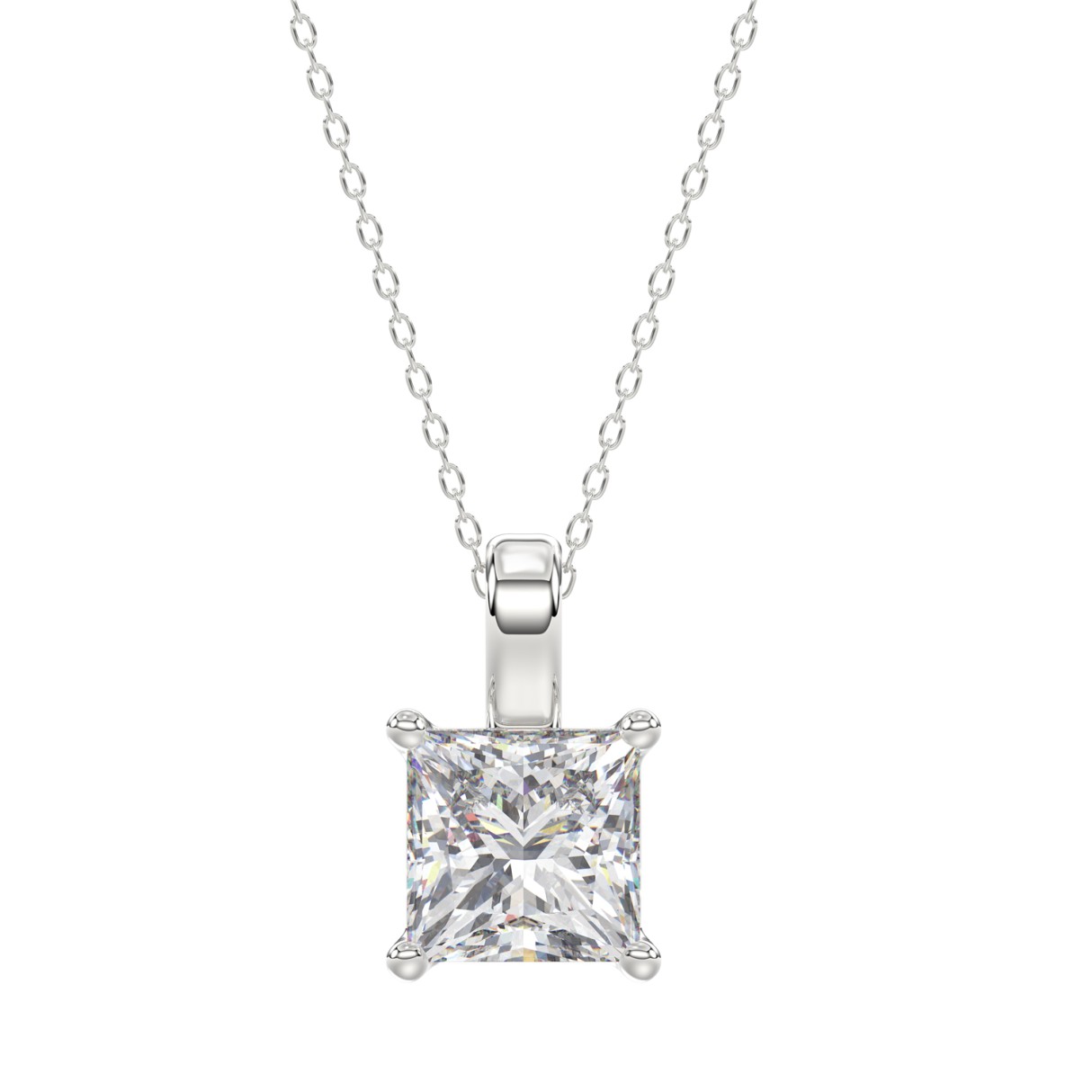 LADIES SOLITAIRE PENDANT WITH CHAIN 4CT PRINCESS DIAMOND 14K WHITE GOLD