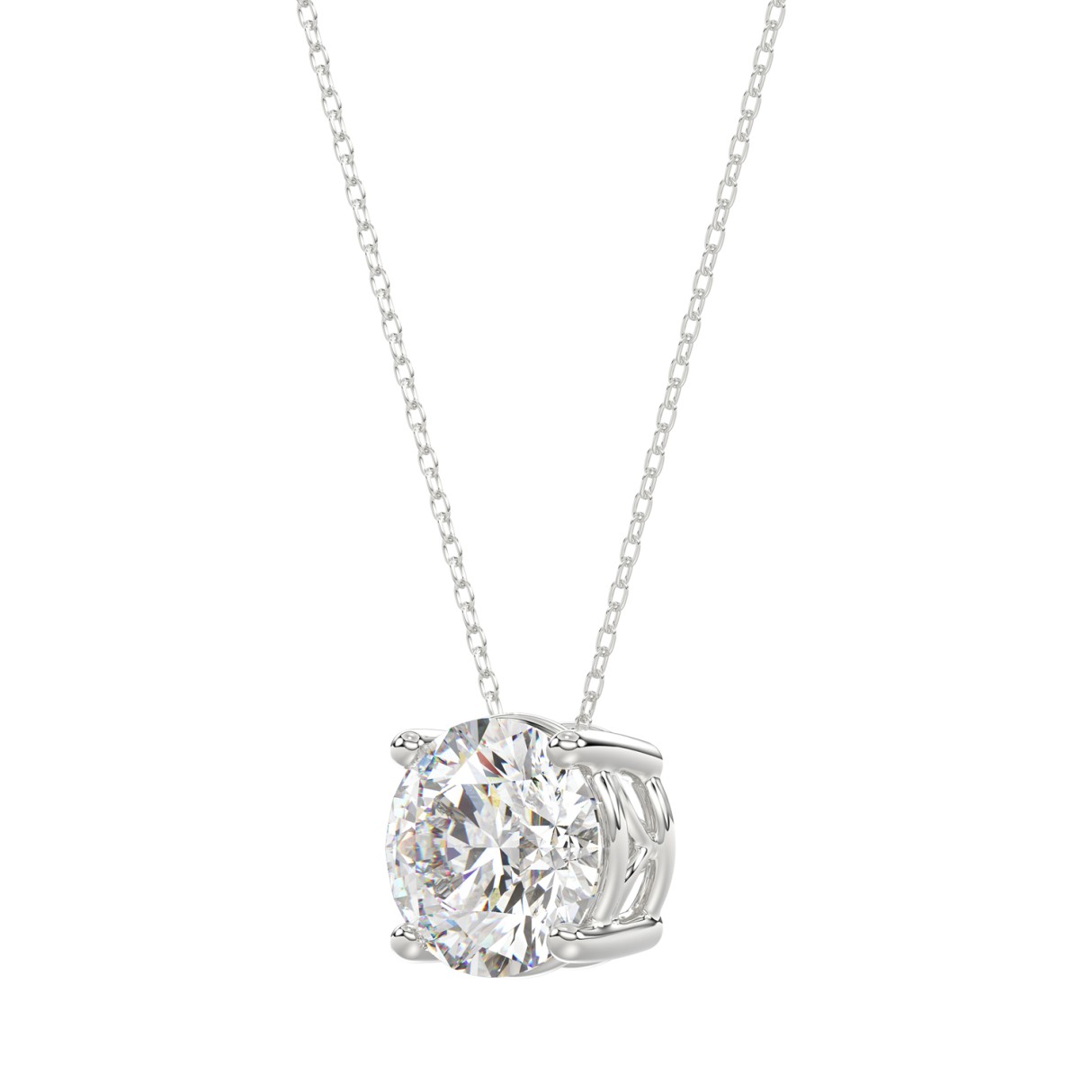 LADIES SOLITAIRE PENDANT WITH UNDER-PASS CHAIN 2.00CT ROUND DIAMOND 14K WHITE GOLD